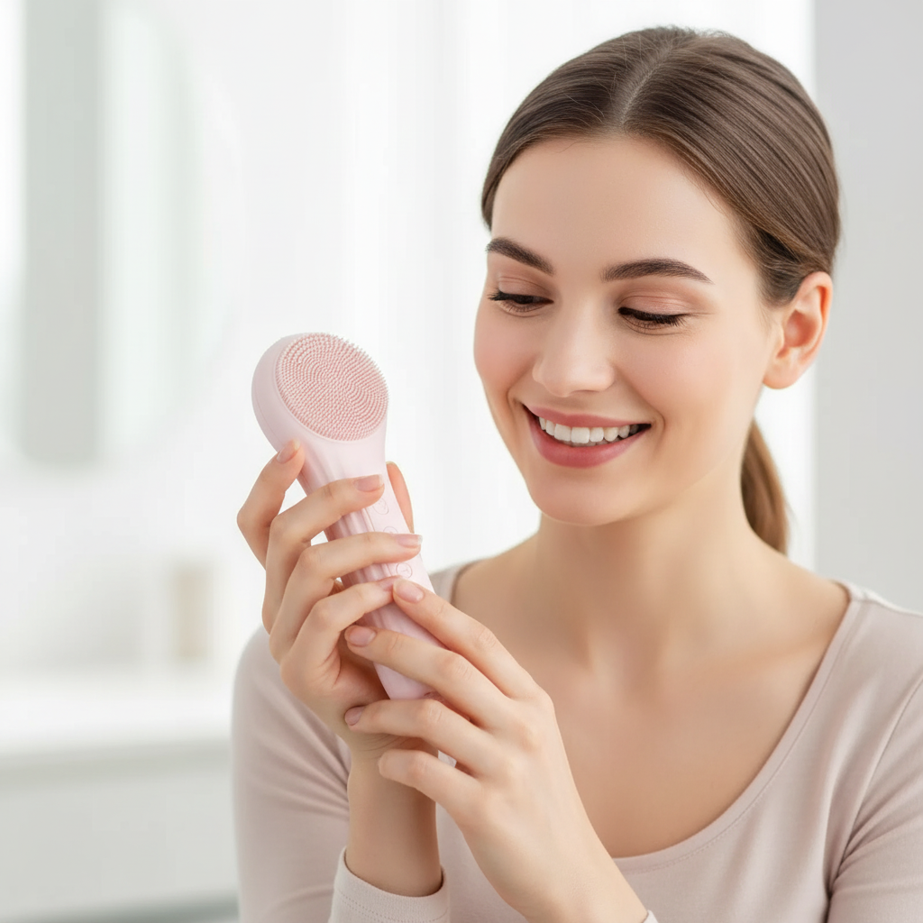 Die elektrische Reinigungsbürste reinigt porentief, wärmt sanft und massiert wohltuend – für ein frisches, strahlendes Hautbild jeden Tag.