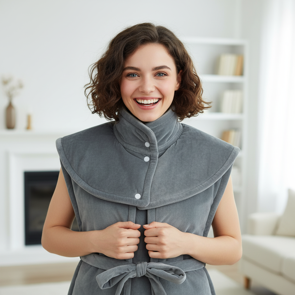 Die intelligenten Heizfelder im Nacken-, Schulter- und Rückenbereich verteilen die Wärme gleichmäßig und tiefenwirksam – genau dort, wo Kälte am meisten belastet.