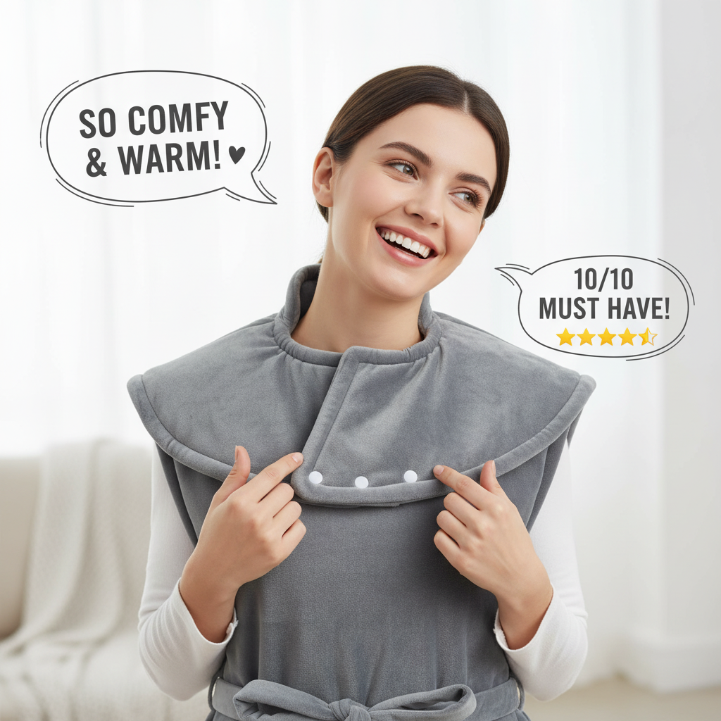 Dank der 3-Zonen-Heizfelder im Nacken-, Schulter- und Rückenbereich verteilt sich die Wärme gleichmäßig über deinen Körper – ganz ohne Überhitzung oder Kälteinseln.